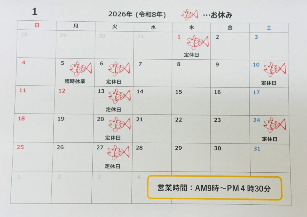 ※1月5日(月)は臨時休業とさせていただきます。